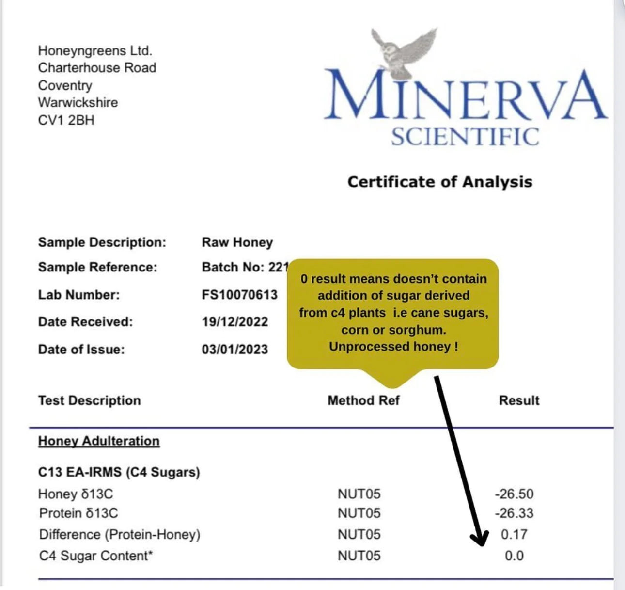 With adulterated honey making headlines, we stand out by sending our honey to one of the UK's leading honey laboratories for rigorous testing, ensuring its purity and freedom from artificial additives