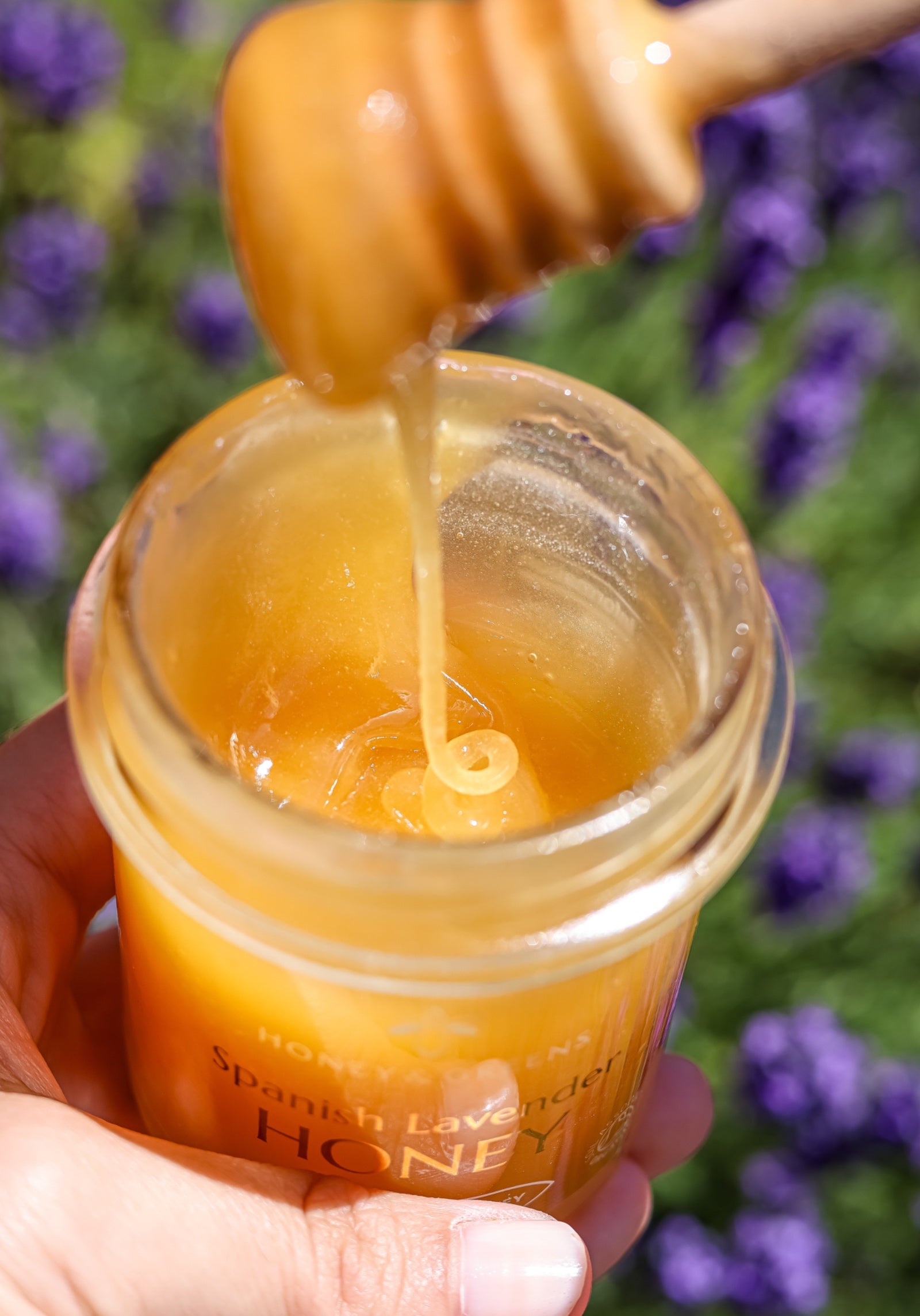 This light and delightful herb flower honey offers a warm and soothing taste of creamy florals. Originating from bees foraging on lavender bushes in the Mediterranean region, it boasts a mild, lighter, and softer flavour profile.